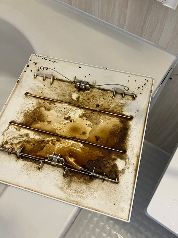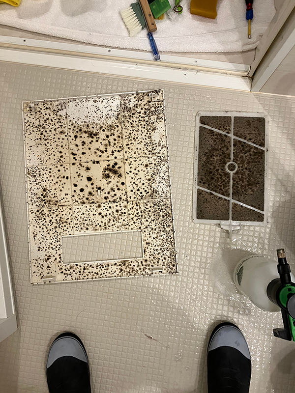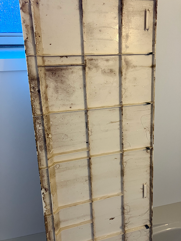 ご覧の通り、黒カビとヘドロのような汚れがびっしりと付着しています。